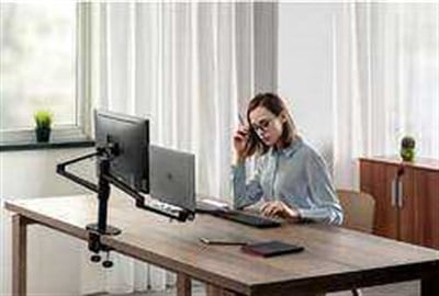 حامل شاشة سطح المكتب + حامل كمبيوتر محمول + حامل لوحي يمكن تعديله بسهولة في جميع الاتجاهات دون استخدام الأدوات ويوفر حرية كاملة في الحركة.