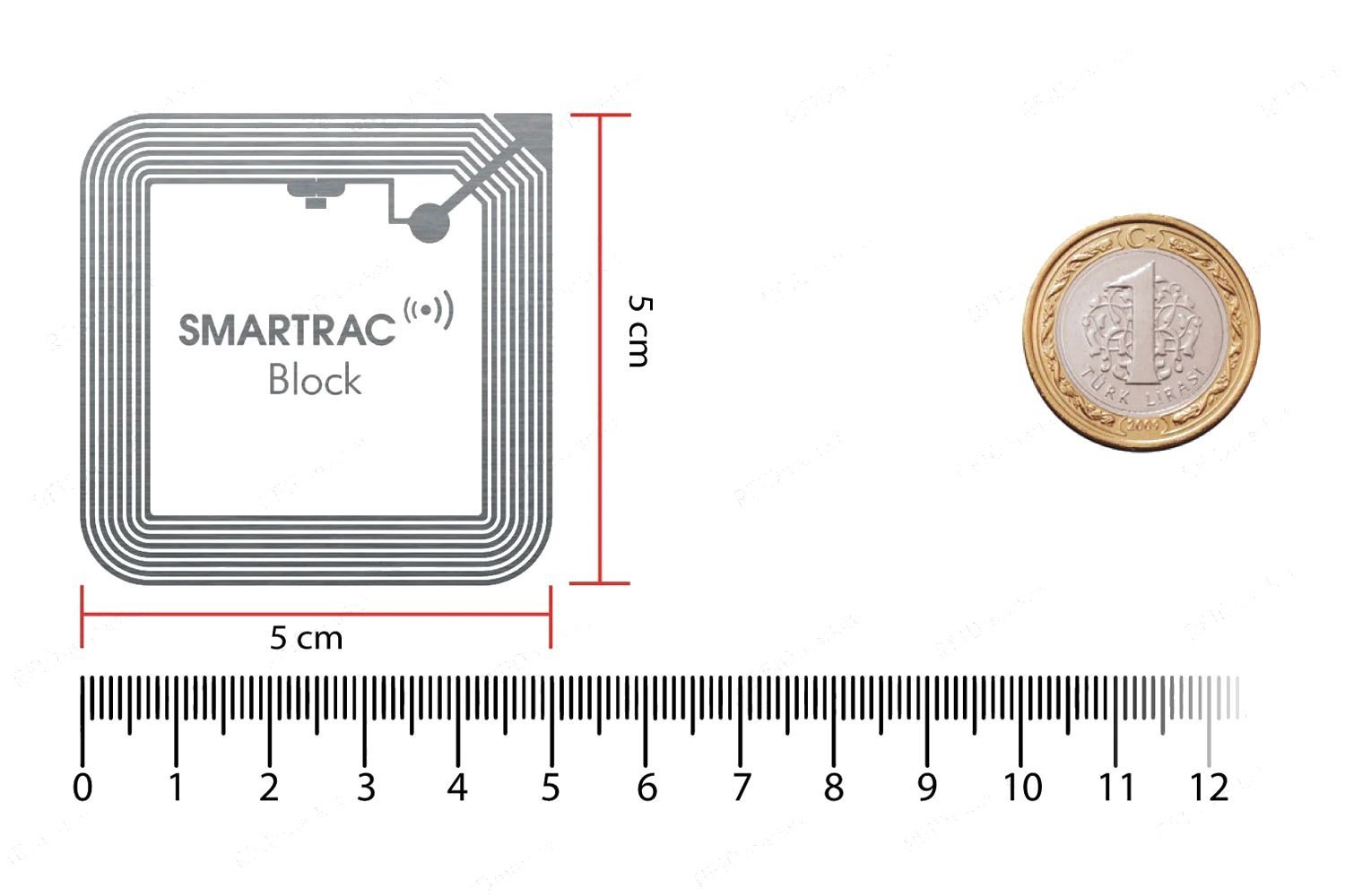Smartrac Block Lite NFCHF RFID Paper Tag (NXP ICODE SLIX2)، 13.56 ميجاهرتز يمتلك نطاق تردد. يحتوي على ذاكرة بسعة 2528 بت. يمكن تطبيقه على أسطح مثل البلاستيك، الكرتون، والزجاج.