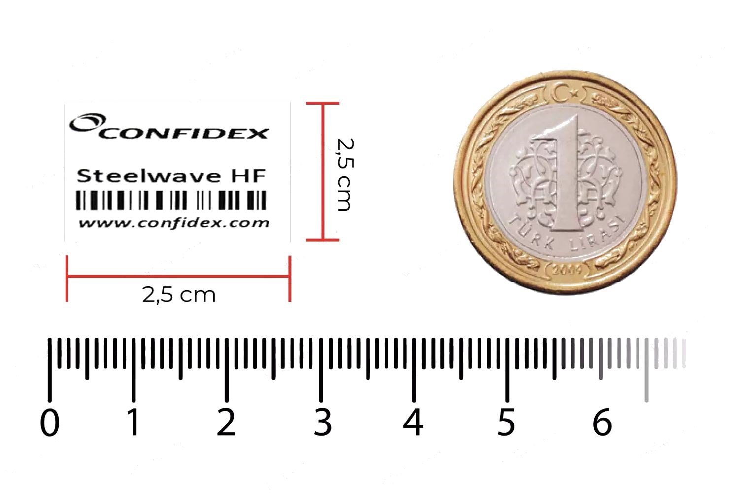 The Confidex Steelwave HF Tag operates at a frequency of 13.56 MHz. It is equipped with NXP NTAG213 and NXP ICODE SLIX2 chips and features memory capacities of 128 bits EPC, 128 bits User, and 32 bits TID. With high adhesion, it provides excellent bonding to all surfaces, including low surface energy plastics and painted metals.